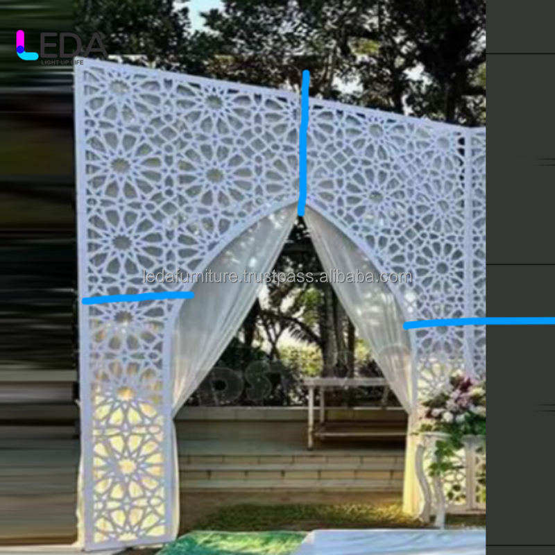 LEDA Toile de fond en arc doré avec motif de luxe Cadre de support de mariage en acier inoxydable pour la décoration d'événements