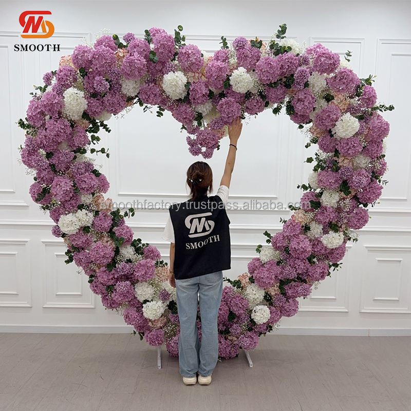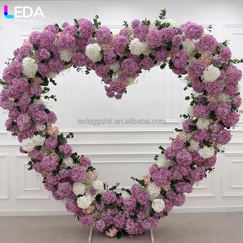Arche de mariage en forme de cœur avec des hortensias violets et blancsNom du produit