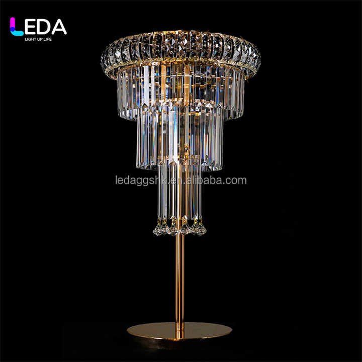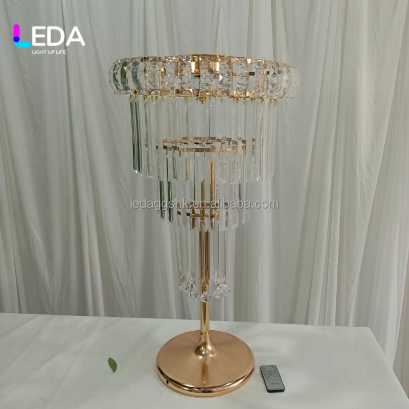 LEDA Support de fleurs en métal doré classique de haute qualité avec cristal et éclairage pour décoration de mariage