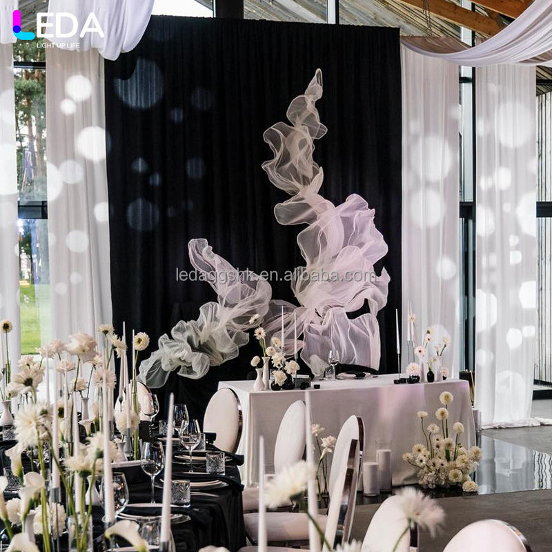 LEDA Accessoires de mariage haut de gamme, installation artistique géante en organza de soie faite à la main, décoration de scène pour événements de mariage