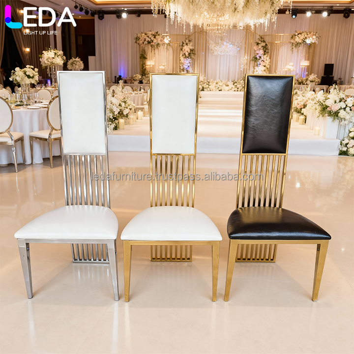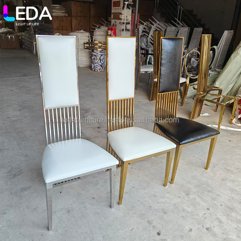 LEDA Hot Selling Chaise d'hôtel de luxe à dossier haut en acier inoxydable pour mariage et fête