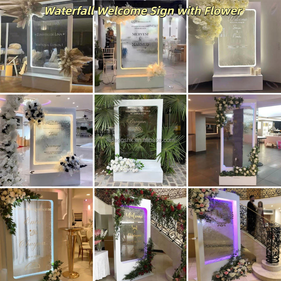 Nom du produit:Panneau de bienvenue de mariage avec fontaine lumineuse à LED