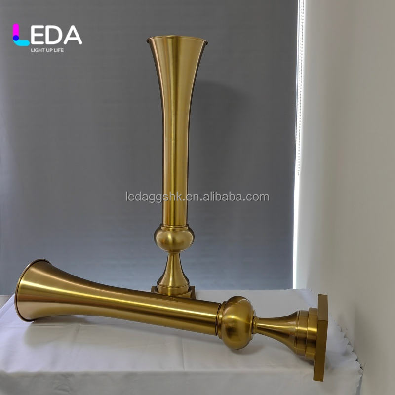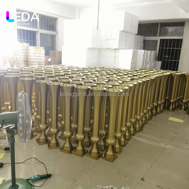 Support à fleurs en métal doré LEDA, haut et élégant, pour centre de table de mariage, vase à fleurs pour la décoration d'événements de mariage
