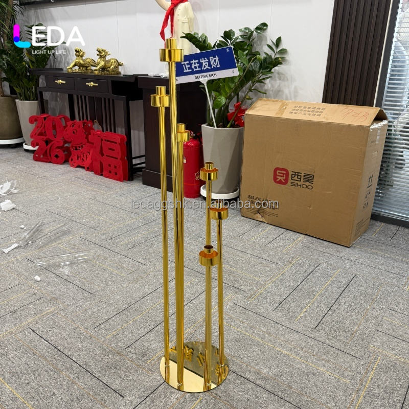 LEDA Chandelier de table en fer doré à 6 bras, durable, pour décoration de mariage