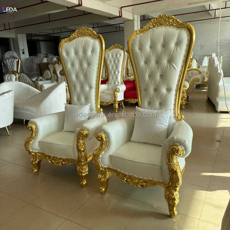 Chaises trônes LEDA King And Queen à dossier haut, dorées et argentées, chaises royales de luxe pour mariage, pour le marié et la mariée