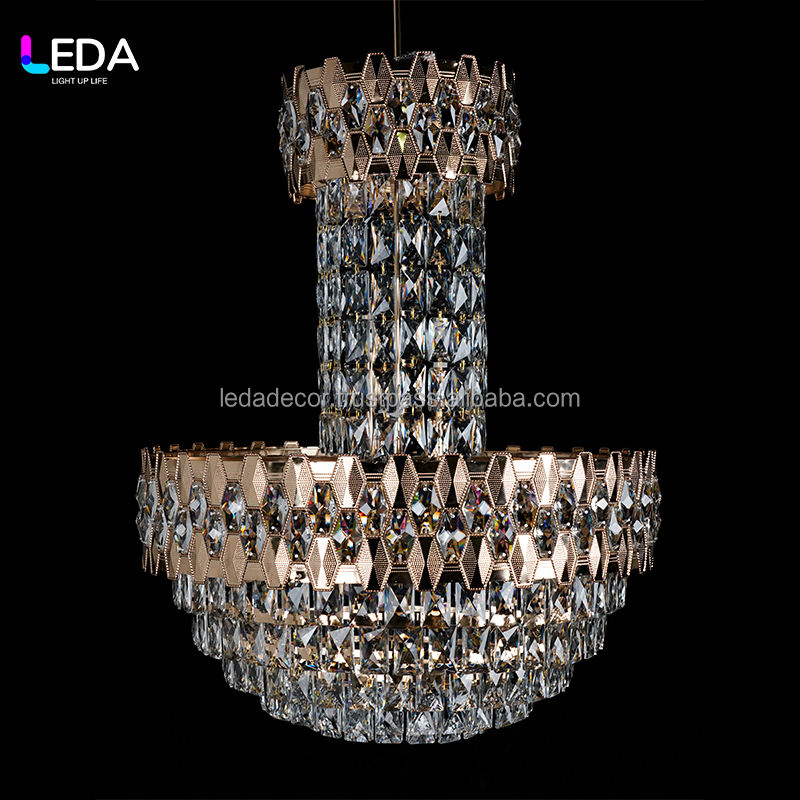 LEDA Dernier grand lustre en cristal luxueux Lustre de plafond en cristal pour fête de mariage