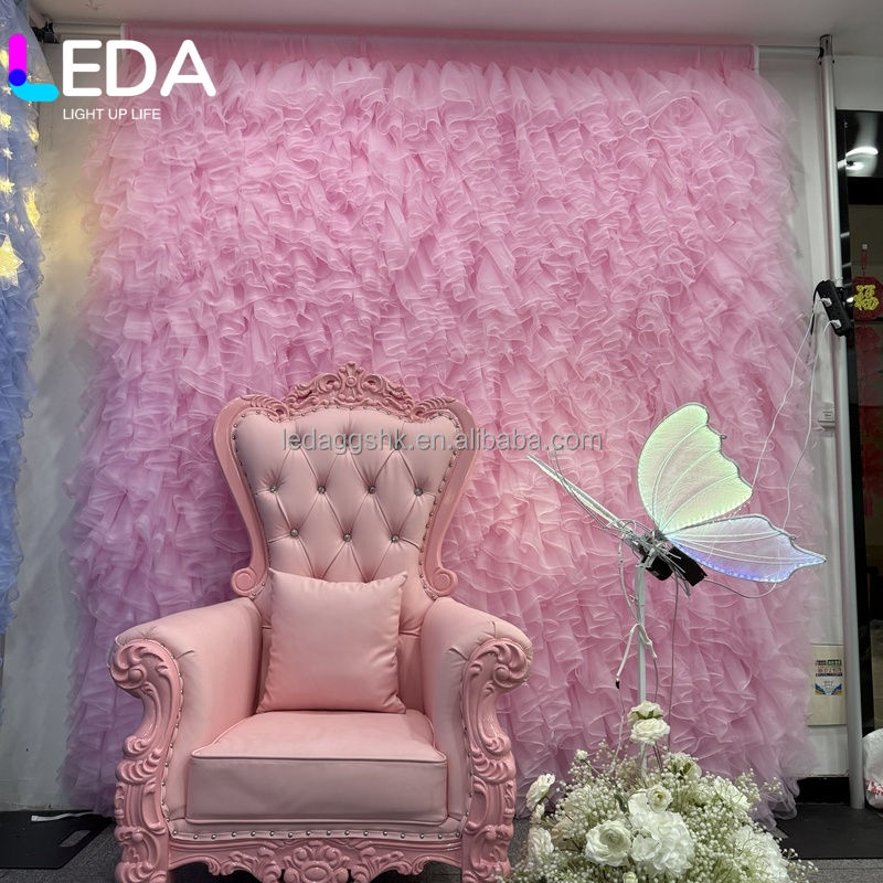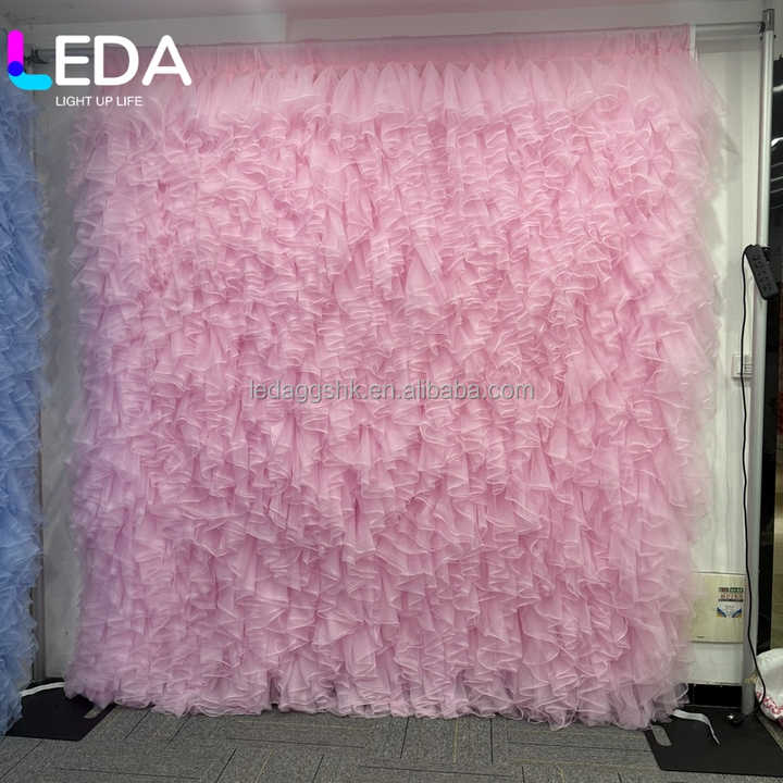 Panneau de toile de fond en tulle rose clair à volants LEDA, mur de fleurs romantique en tissu pour mariage, baby shower, fête, décoration de photomaton
