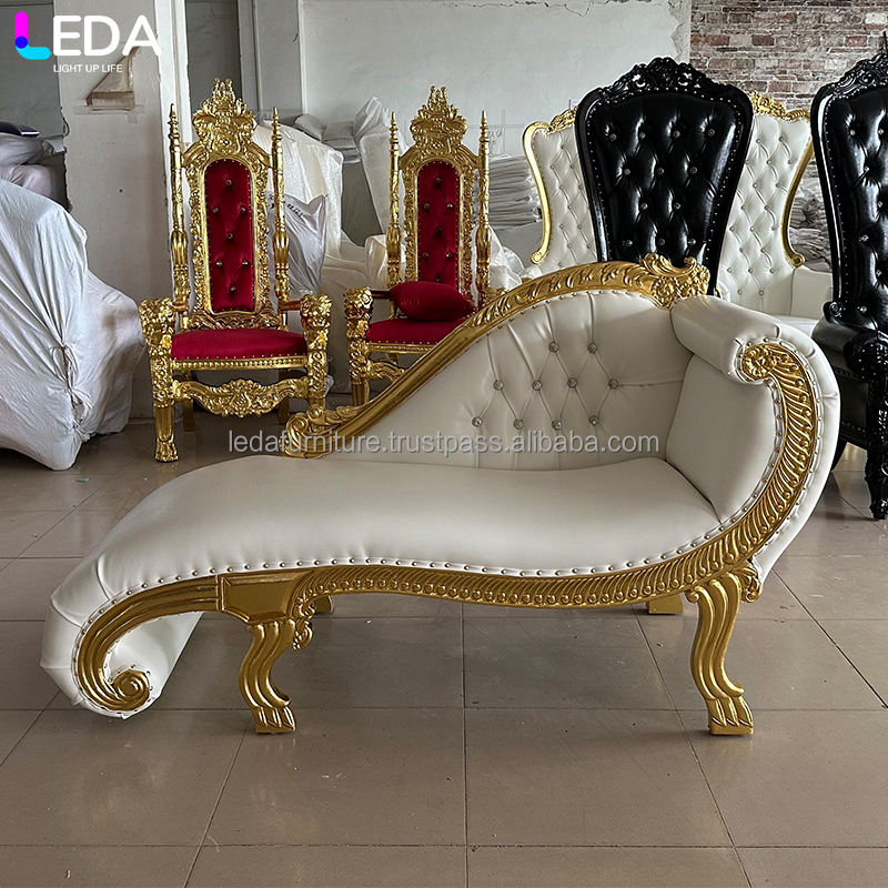 LEDA Luxurious Fabric Armrest Sofa Chair for Wedding Hotel Apartment Hospital-Modern Golden Throne Sofa
