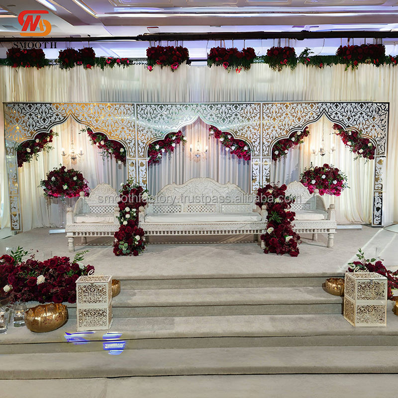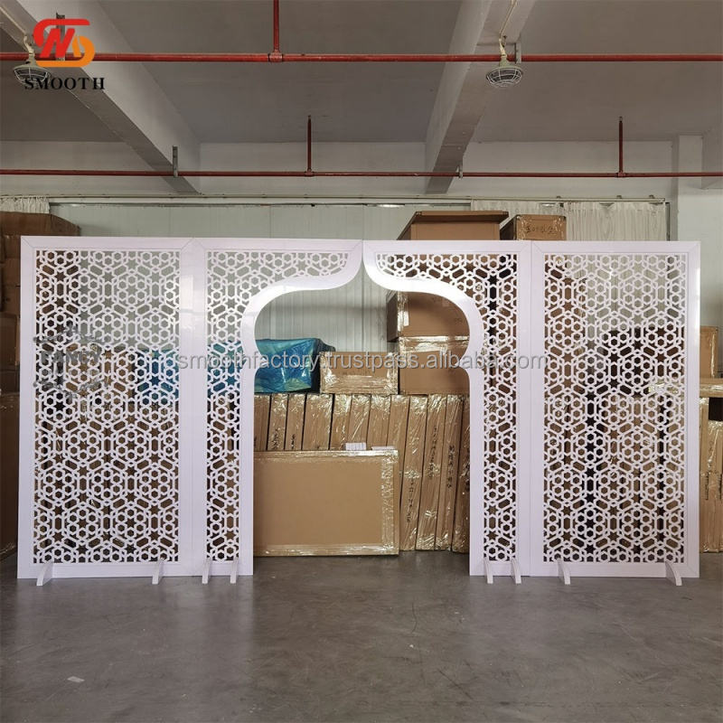 Arche de toile de fond de scène de mariage de luxe LEDA, motif argenté, ensemble de 3 pièces, porte cintrée pour décoration de mariage