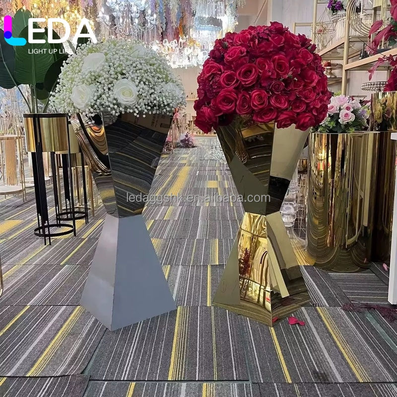 Vase en métal LEDA, décoration de table de mariage, centre de table, décoration de vase en métal pour la maison, décoration d'hôtel