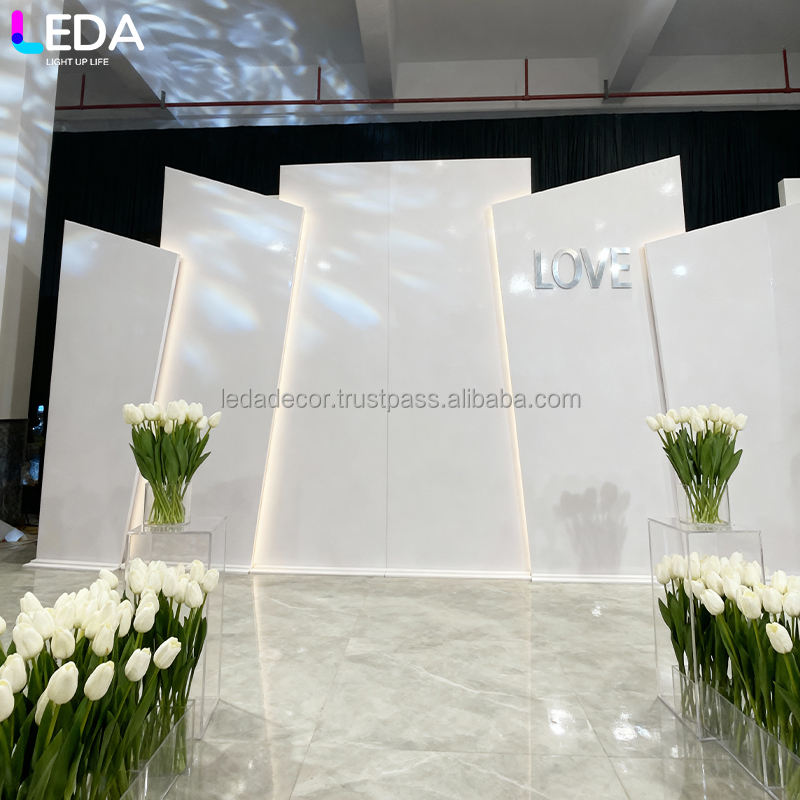 LEDA Décoration moderne de luxe pour événements, toile de fond de scène en acrylique, panneau d'arche, décoration de fond de scène de mariage
