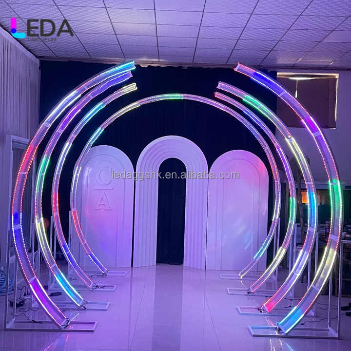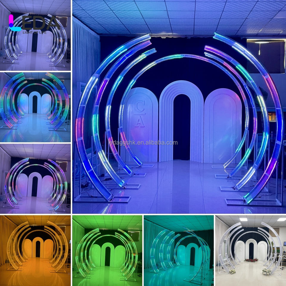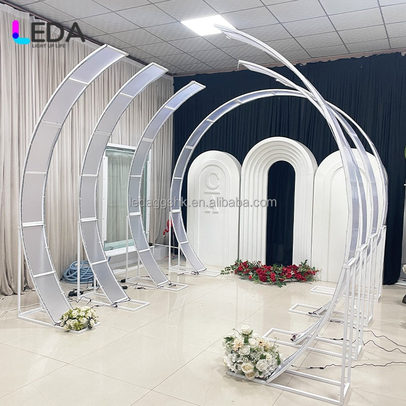 Arche de mariage moderne en métal LEDA et éclairage d'entrée, toile de fond - taille/couleur personnalisable pour les mariages/fêtes