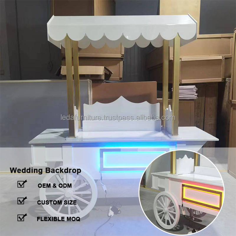 Chariot à bonbons LEDA moderne et professionnel, nouveau design, avec lumières LED, en acrylique, pour les fêtes d'anniversaire, les mariages, intérieur/extérieur