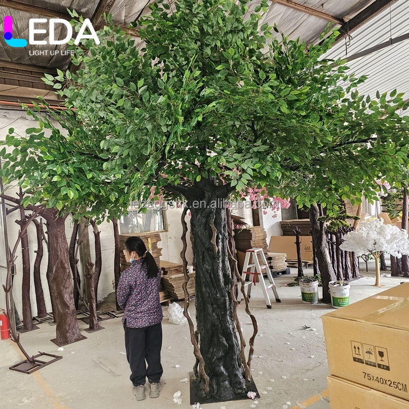 Grand arbre artificiel LEDA naturel, unique, pour extérieur et intérieur, en fibre de verre durable, idéal pour la décoration de mariage