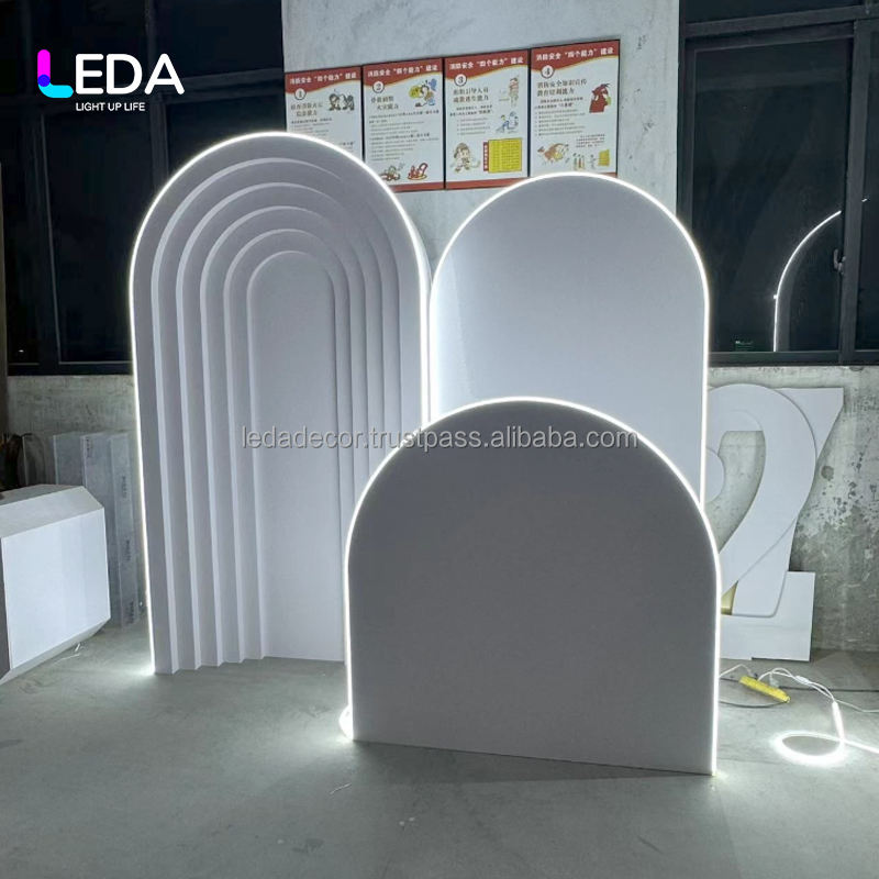 LEDA Nouveau Design Personnalisé Acrylique Blanc Multicouche Arc Stéréoscopique Toile de Fond Lumineux pour la Décoration d'Événements