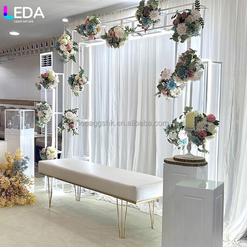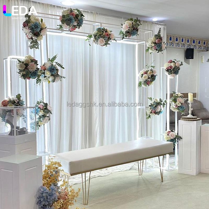 Toile de fond métallique carrée blanche détachable, fabriquée en usine par LEDA, pour mariages, banquets et fêtes