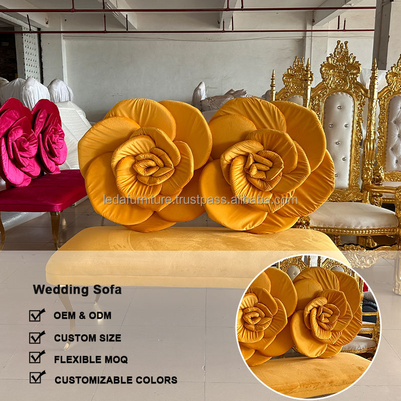 Canapé de mariage moderne en velours jaune rose à une place LEDA pour hôtel et appartement