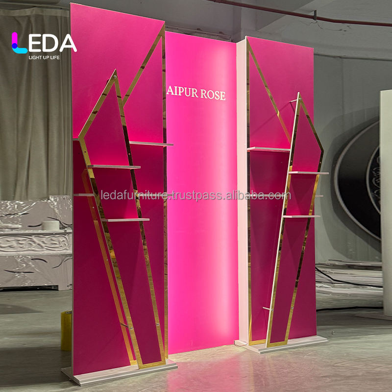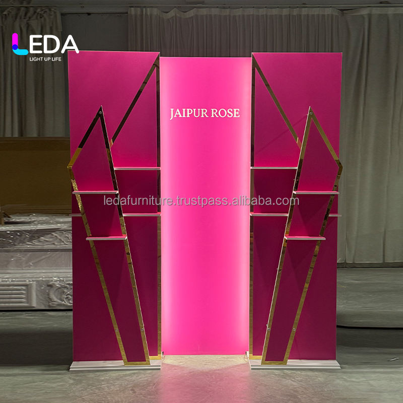 Toile de fond en acrylique rouge rose moderne et professionnelle LEDA pour événements de mariage avec design détachable - Nouveauté