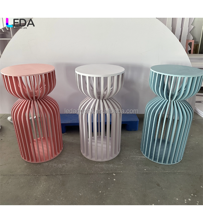 LEDA vend un support à gâteau rond en acrylique à nervures blanches pour mariage, événement, fête d'anniversaire, décoration