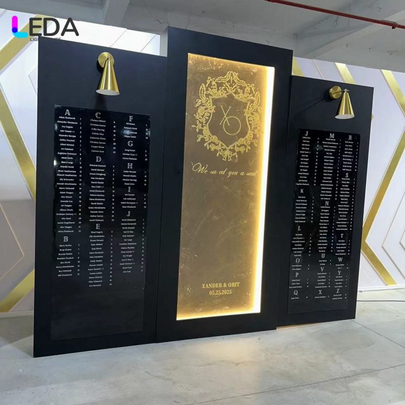 LEDA Décoration LED de fond de scène de mariage en or noir de qualité supérieure pour les événements de mariage et les fêtes