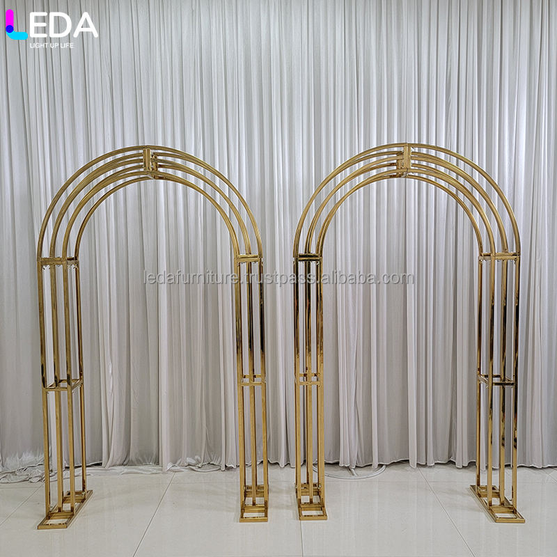 LEDA Toile de fond pour fleurs de mariage Arche en métal doré Cadre en acier inoxydable pour décoration de fête d'événement