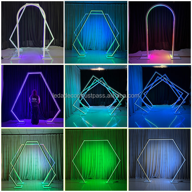 LEDA Support d'arche de mariage avec support de lumière RVB en métal blanc pour les activités de décoration de fête de mariage