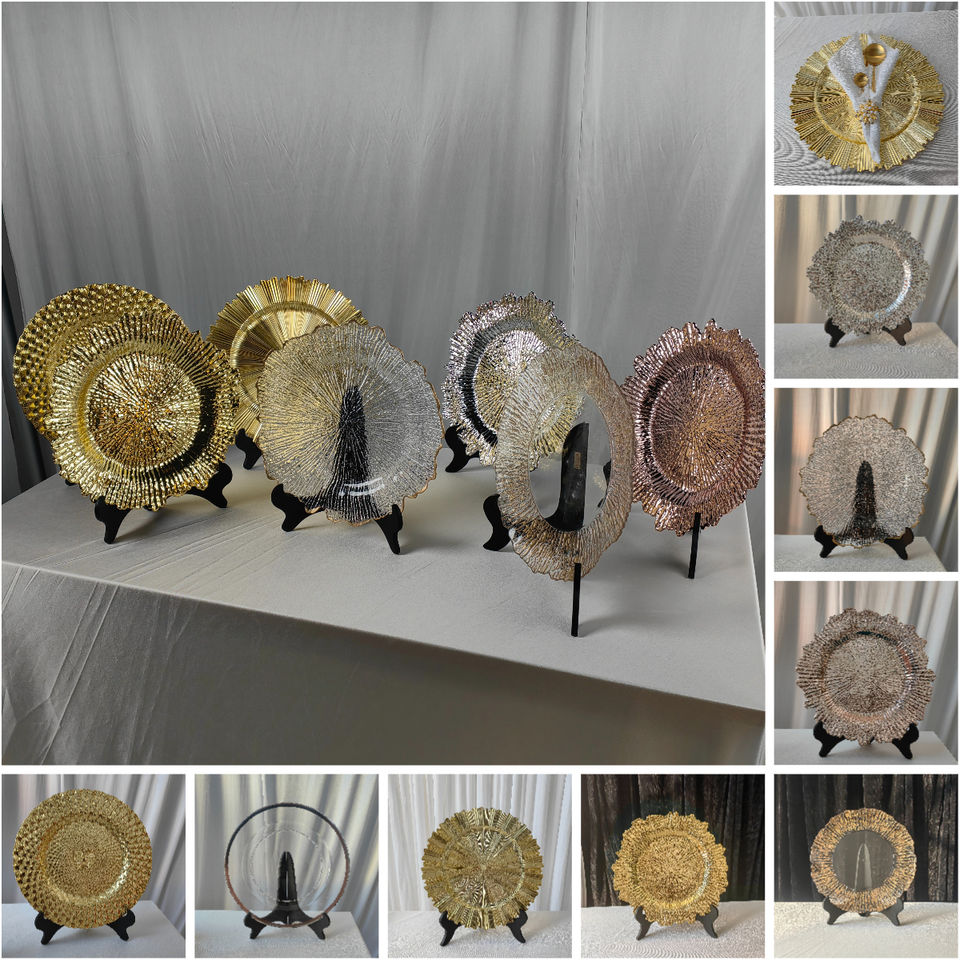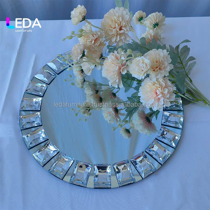 LEDA Wholesale Haute qualité Décoration de mariage, événement, hôtel, fête 13 pouces Gem Diamond Mirror Glass Dinner Plate