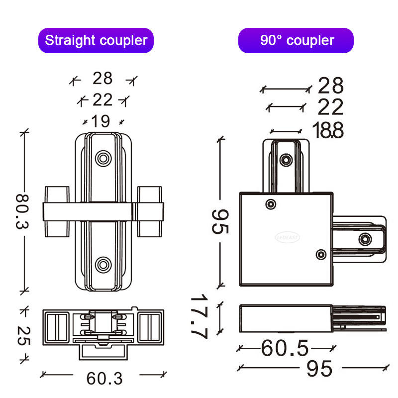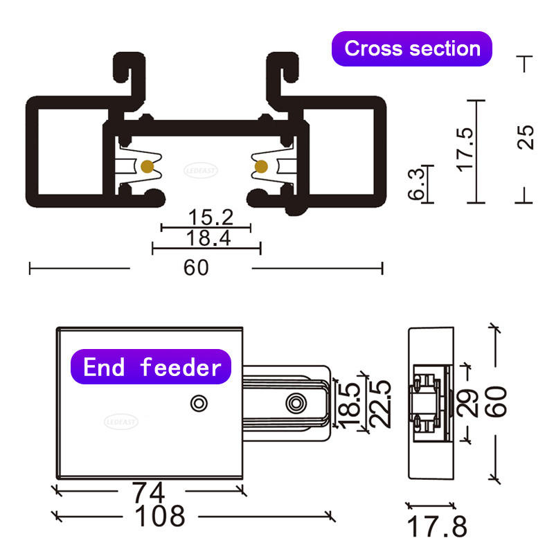 Rail de guidage suspendu en aluminium à circuit unique dilaté LEDEAST T025 à 2 fils pour boutiques, centres commerciaux et magasins