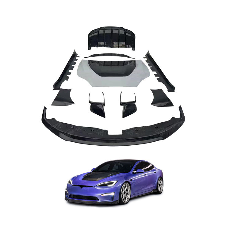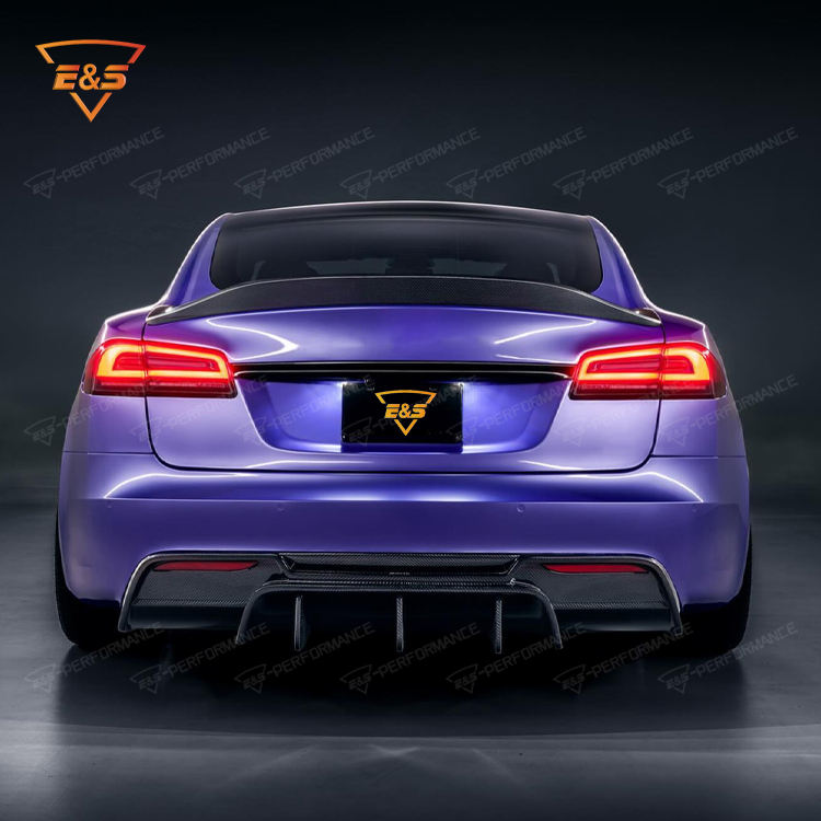LEGAI Factory-Customized High-End Dry Carbon Fiber V Style Tesla Model S First Gen Hatchback Rear Kit Black Polished Finish Full