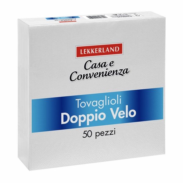LEKKERLAND Serviettes de table jetables blanches 2 plis, 50 x 48 pièces, boîte, style mouchoir, en pâte de bois vierge