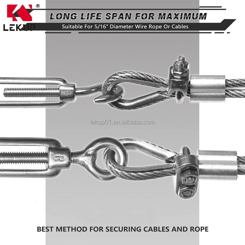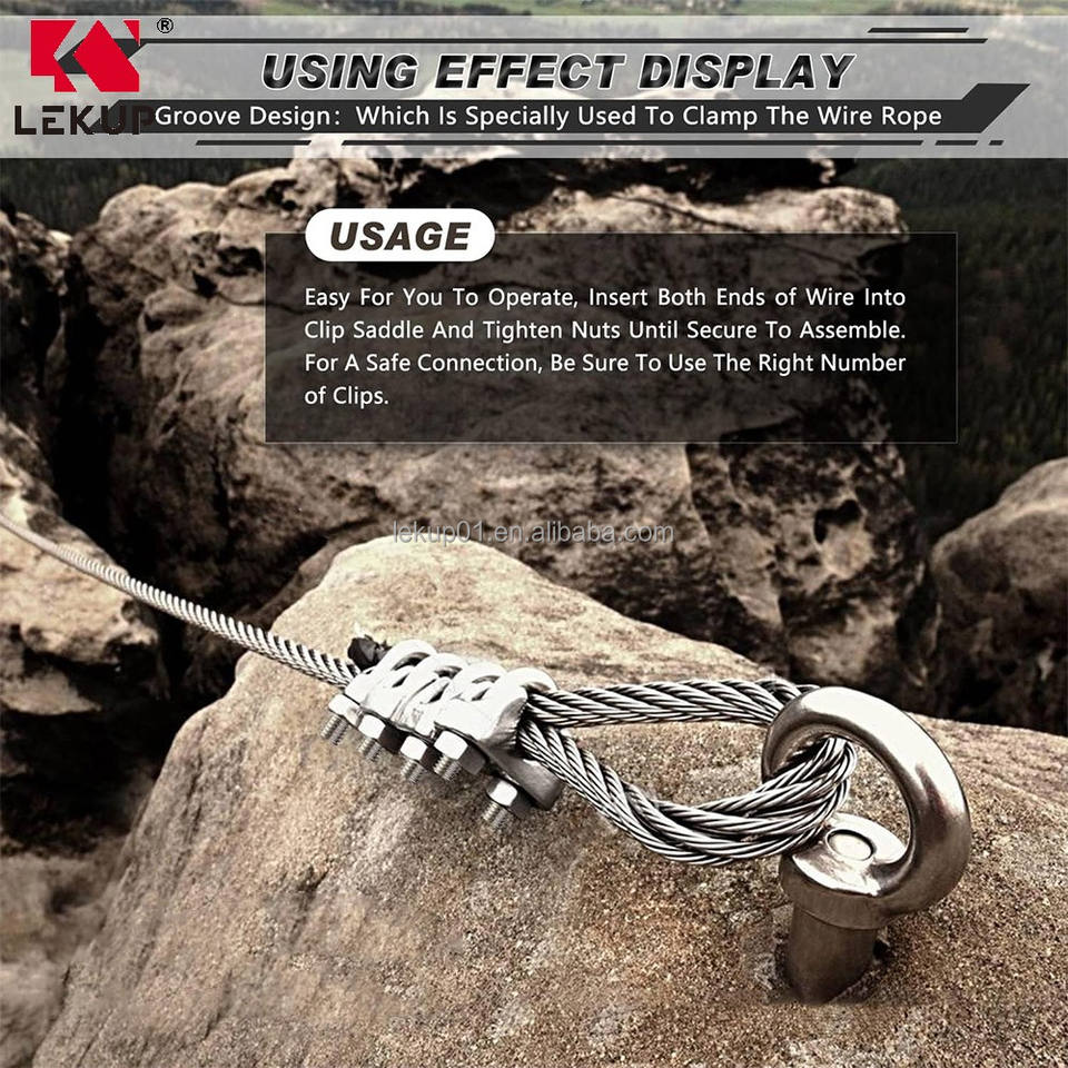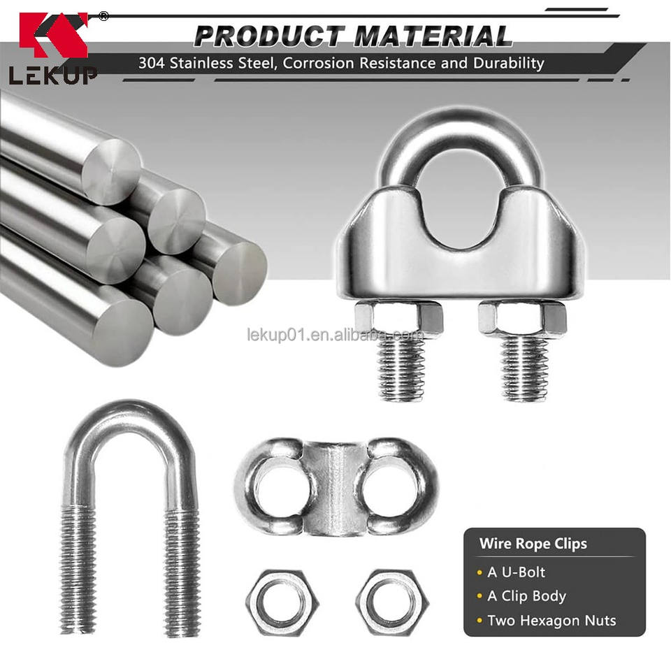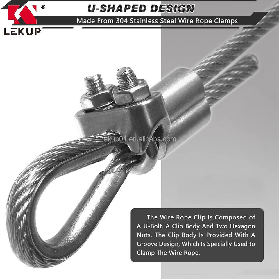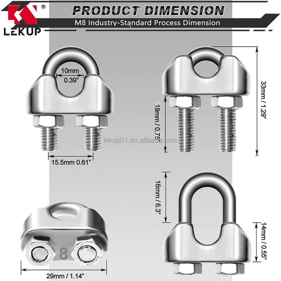 LEKUP Vente d'usine – Fixation en U en acier inoxydable 304, 5/16 pouces, M8, pour câble métallique, en stock