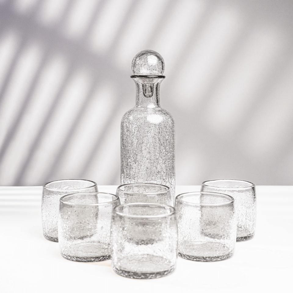 LELLA 6-Piece Cracked Transparent Glasses & Carafe Pack Dishwasher-Safe