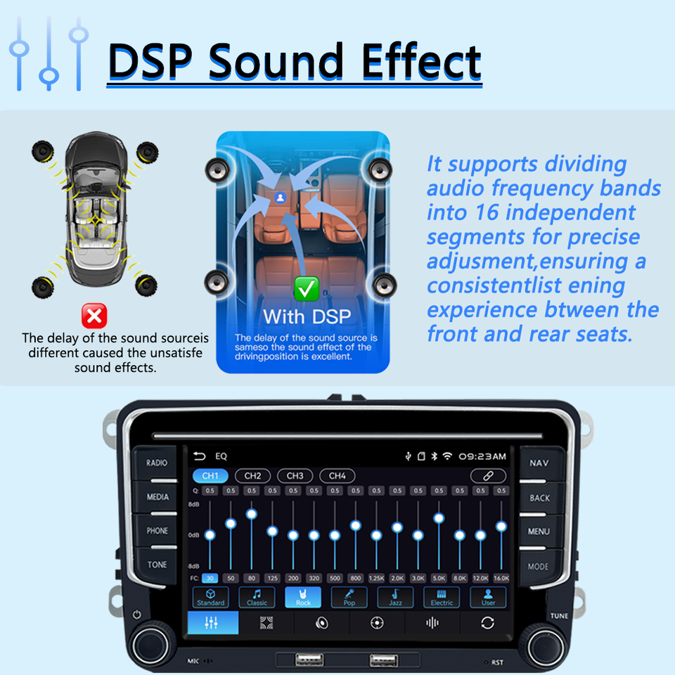 GPS, DSP, CarPlay, Lien de miroir, Android auto, Volant de voiture de Contrôle, Microphone intégré, Hi-Res Audio, Haut-parleur intégréFonction