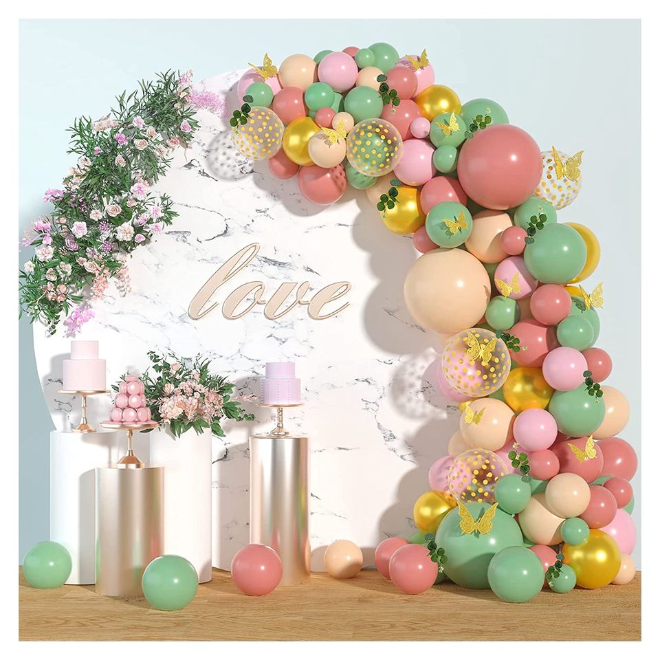 Kit d'arche de ballons rose corail poudré et vert sauge