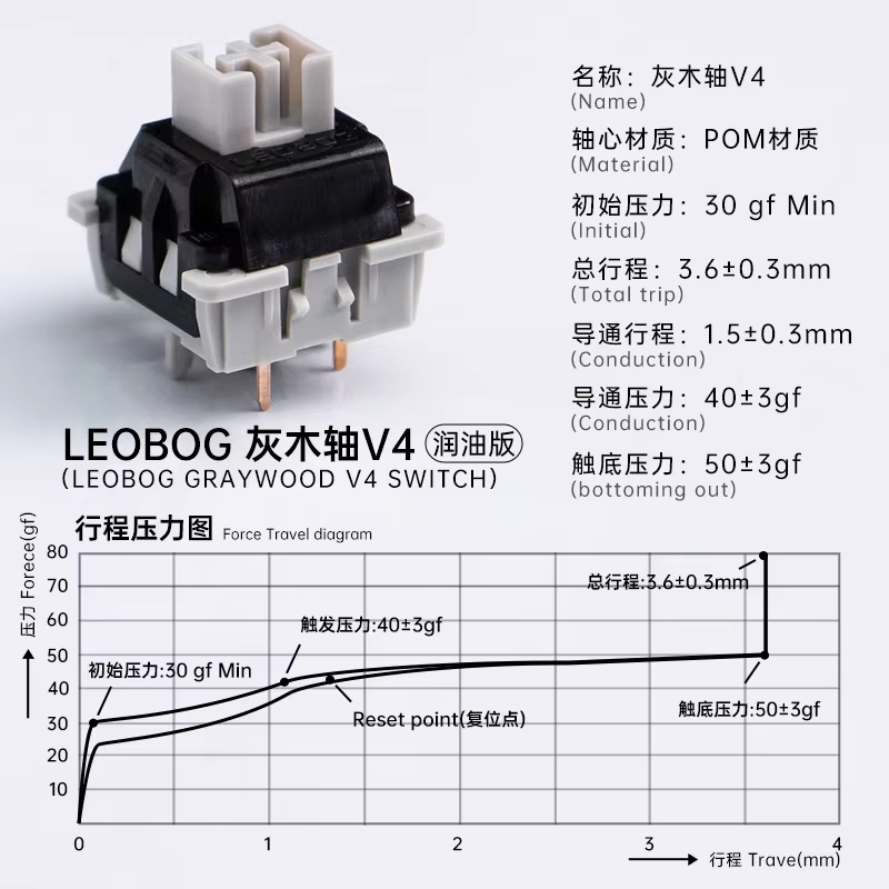 Marque de corps Axis:LEOBOG GrayWood V4 V3 Switch Linéaire POM HIFI Switches Mécanique Personnalisée