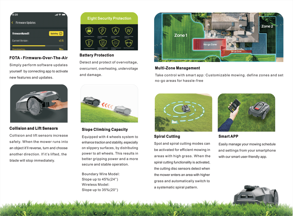 LEOPARD Caméra sans fil AI Vision 300m2 Robot Tondeuse à gazon 20V Batterie au lithium Robot Tondeuse intelligente sans fil Boundry