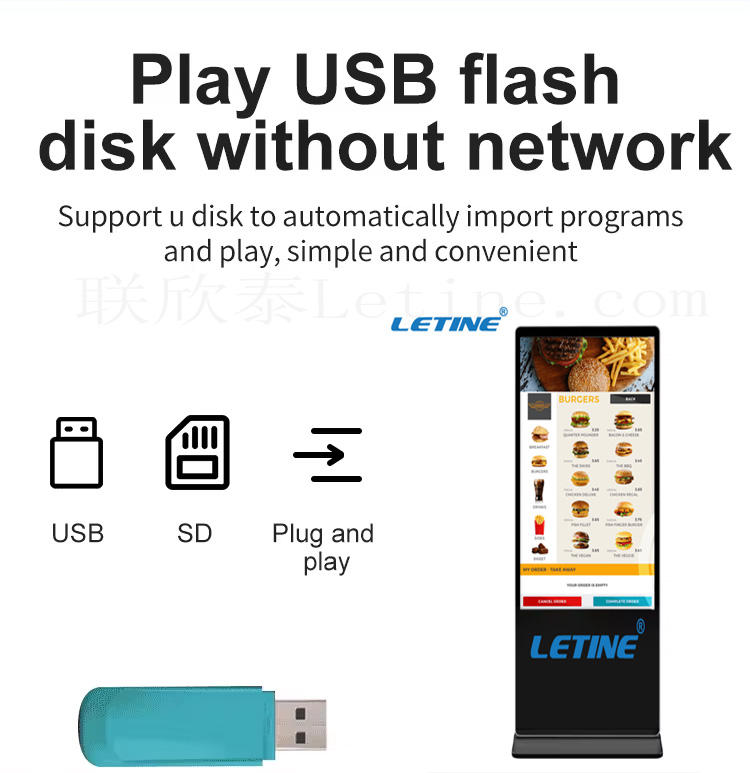 Lecteur publicitaire LCD vertical LETINE à prix abordable, Android 11, CMS basé sur le cloud pour les aéroports intérieurs