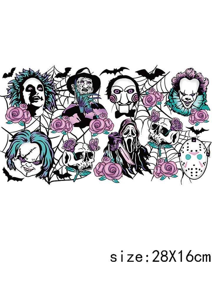 LETOP 1PCS Waterproof Horror Character Skull UV pour DTF Sticker 24OZ Cup Wrap pour Halloween
