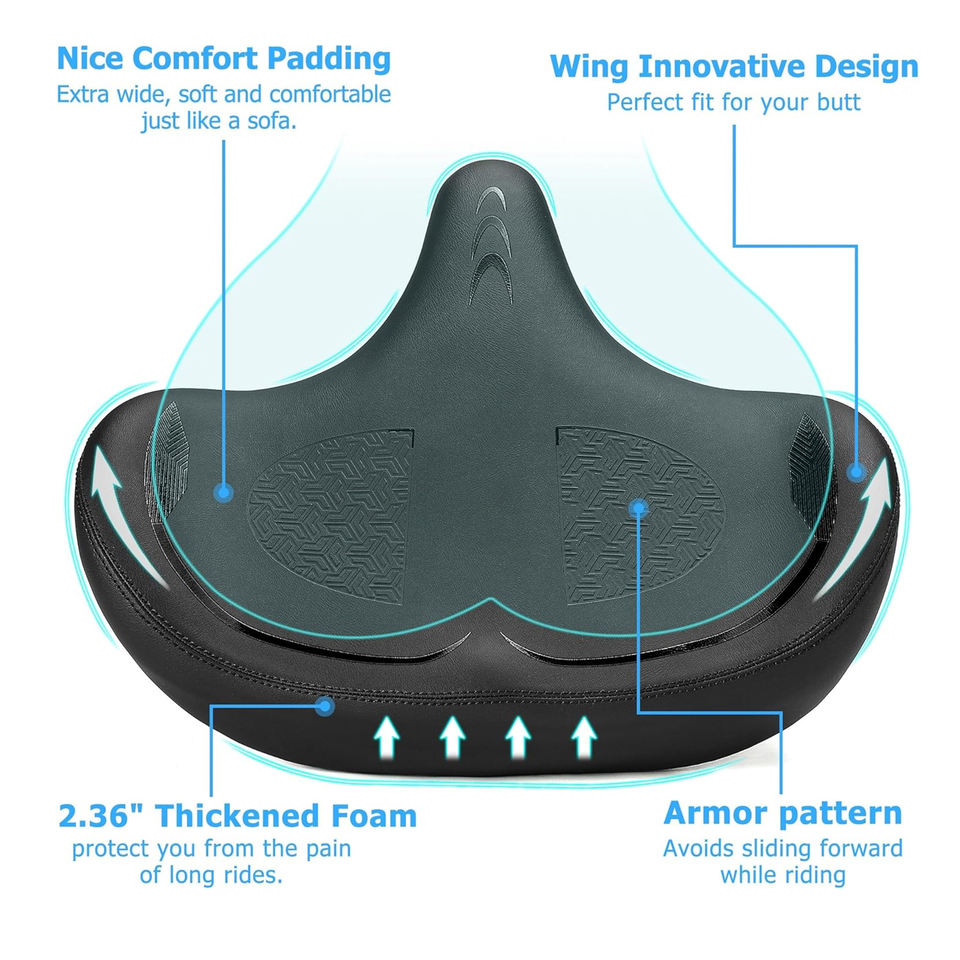 LEWEE Selle de vélo extra large Coussin de siège de vélo pour les gros fesses Extra large et confortable