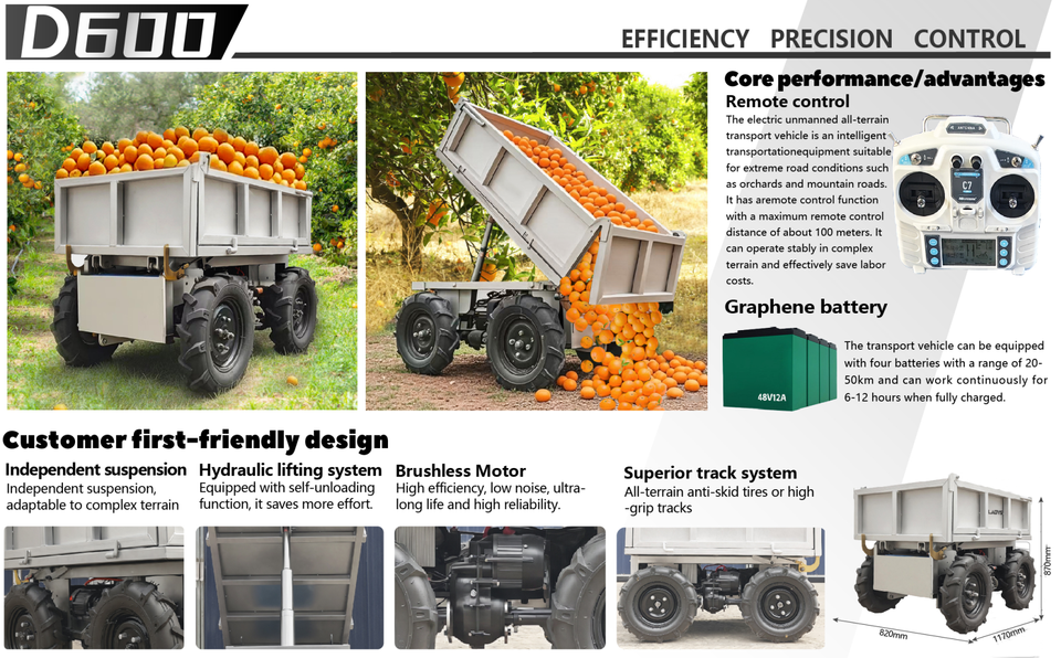 Véhicule de transport électrique tout-terrain LEZUM D600 pour ferme et verger, 4x4, UTV, ATV, mini-benne, remorque, usine chinoise recrute des concessionnaires