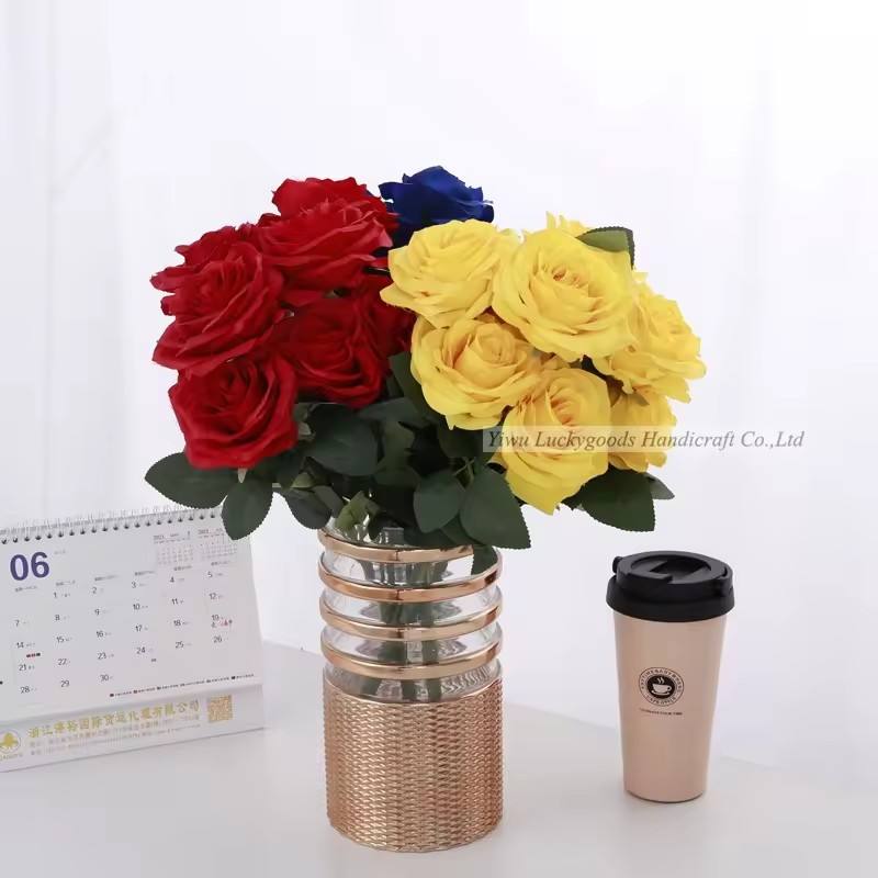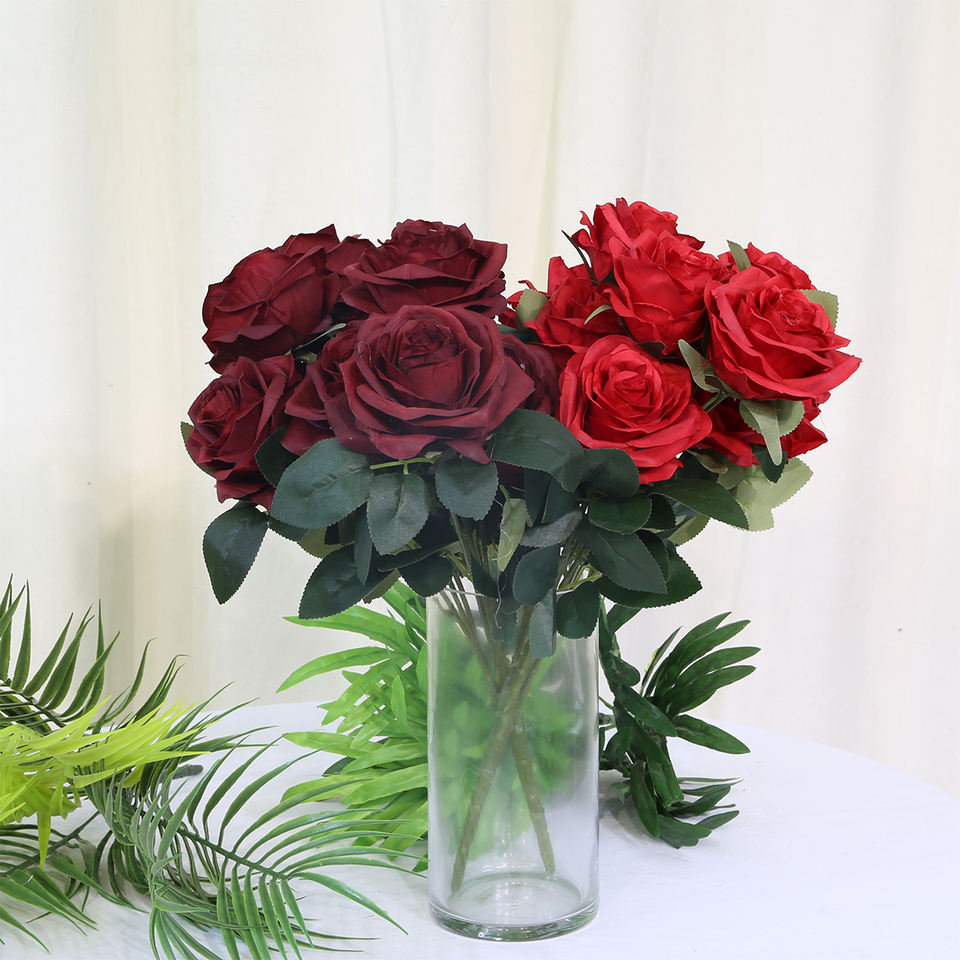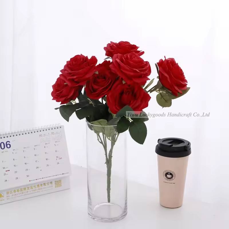 LFR081 vente en gros pas cher prix Couleur rouge Soie Rose Fleurs Bouquets de mariage Artificielle Buisson de fleurs