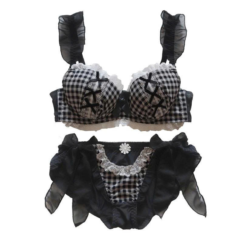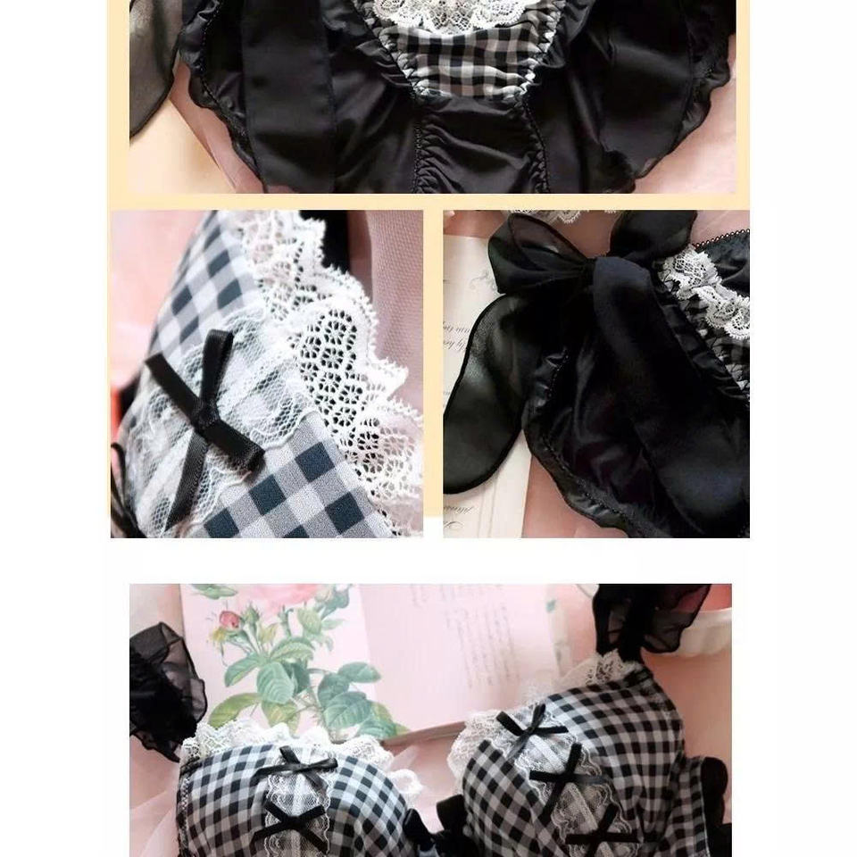 LG10 Cute gingham lingerie set with lace trim bow accents and tie side panties soft playful and sexy perfect for special moments