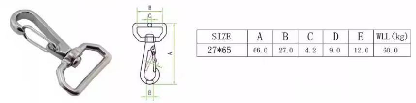 Crochets à ressort en acier inoxydable LGll 304, taille 27x65mm