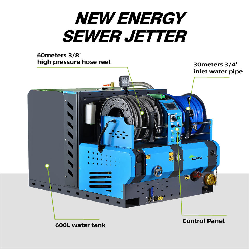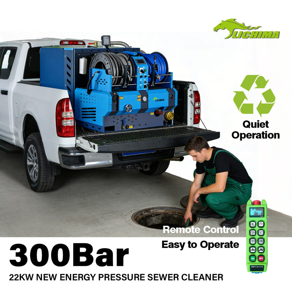 Machine de Nettoyage de Canalisations LICHIMA à Haute Pression Électrique Montée sur Véhicule, Grand Débit 300 Bar