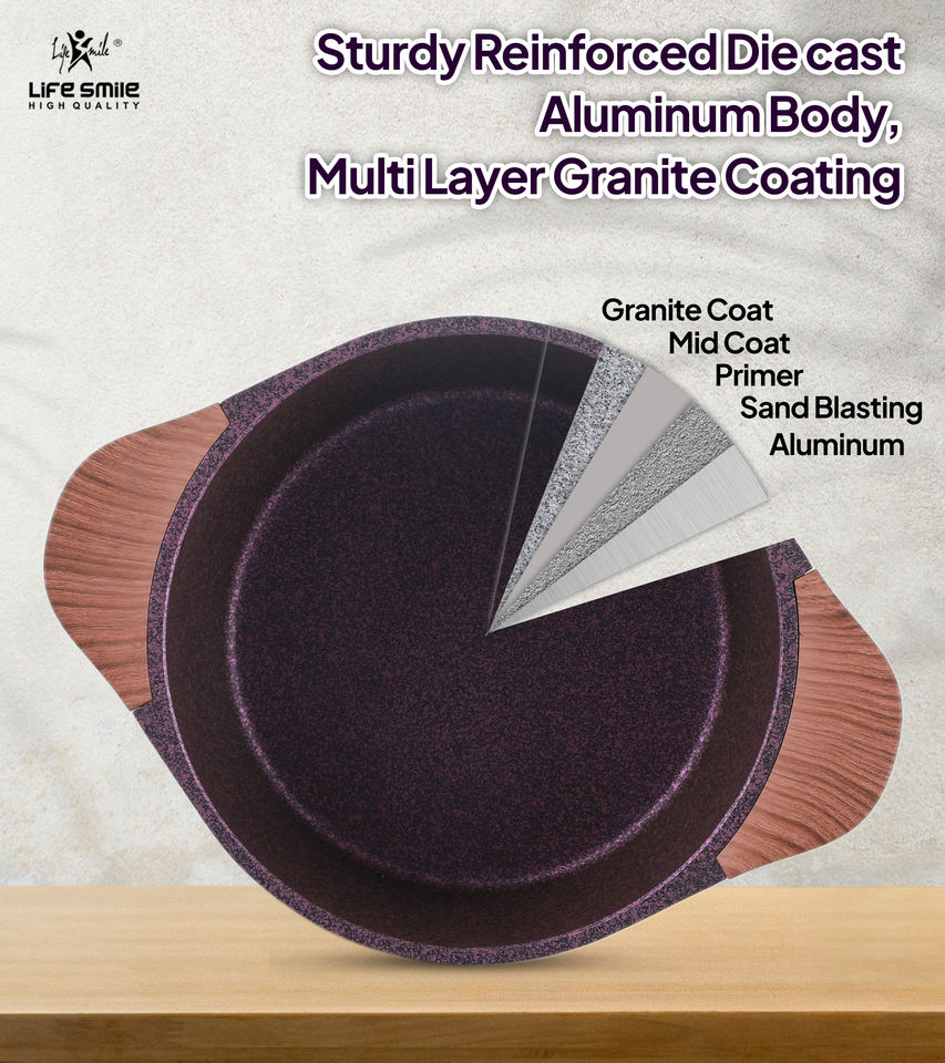 LIFE SMILE Batterie de cuisine de luxe en aluminium antiadhésif de 8 pièces avec base à induction et revêtement en granit 100% casseroles et poêles sans PFOA