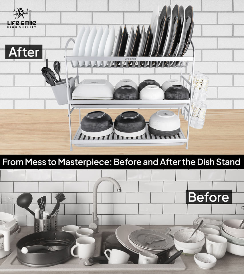 LIFE SMILE Porte-vaisselle en aluminium de haute qualité à 3 niveaux pour ustensiles de cuisine Séchoir à vaisselle avec fil à trois couches Organisateur de verre
