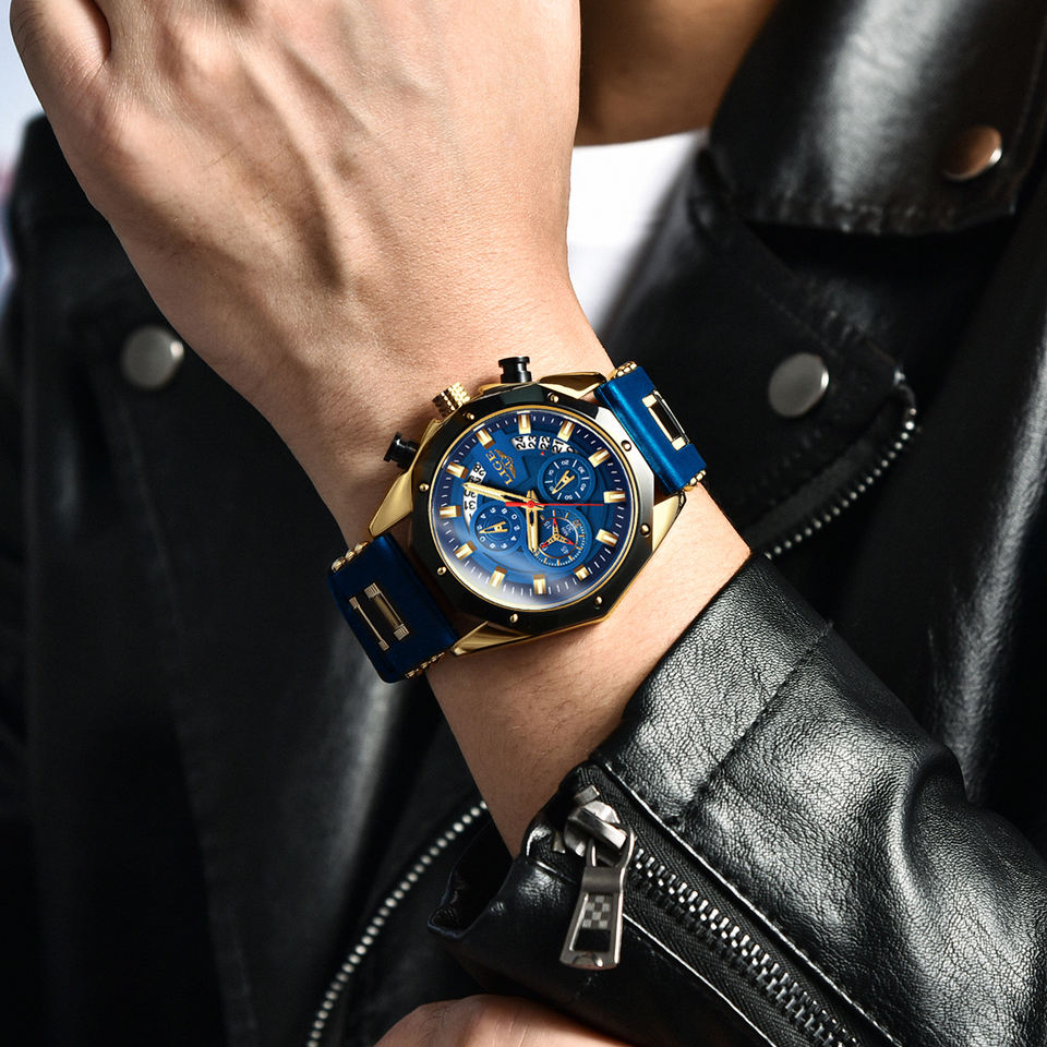 LIGE LG8908 Usine Vente en Gros Montre pour Hommes Bleu Silicone Mains Lumineuses Luxe Quartz Couple Montres Personnalisées Cadeau Montres Homme