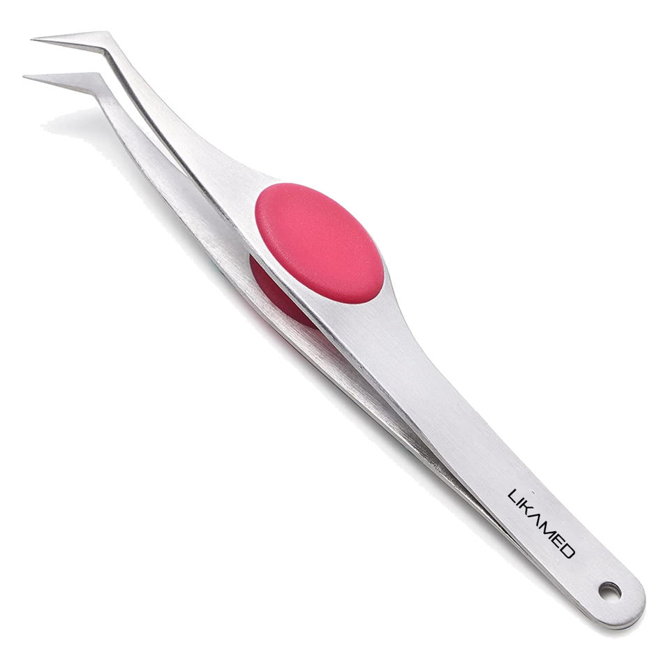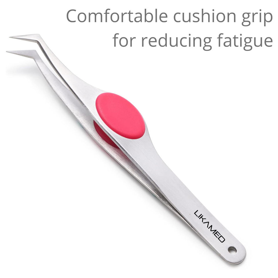 LIKAMED High Precision Angled Tip Tweezers with Cushion Grip 12cm Jewelry Tweezers with Fine Angled Tips