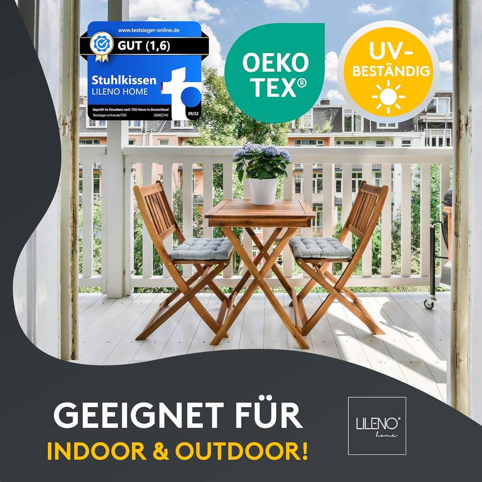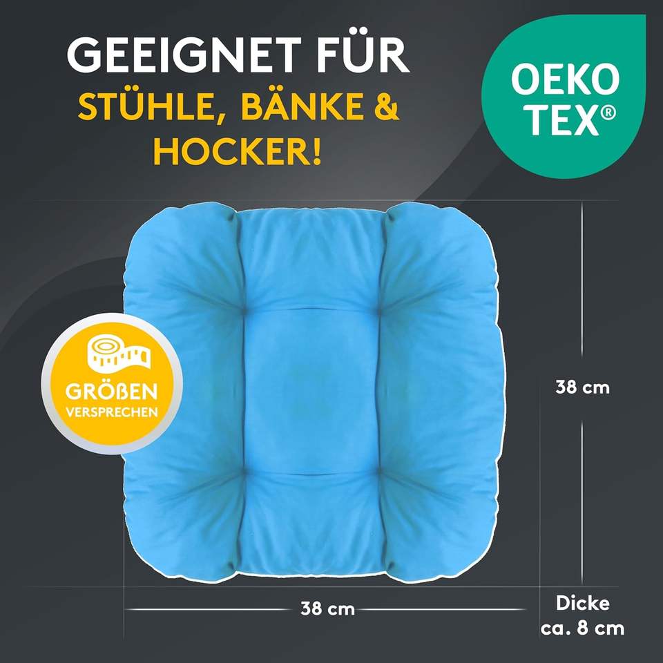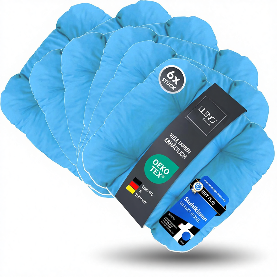 LILENO HOME Lot de 6 Coussins de Chaise en Polyester Turquoise (38x38x8cm) Imperméables et Résistants aux UV pour Jardin, Cuisine et Salles à Manger