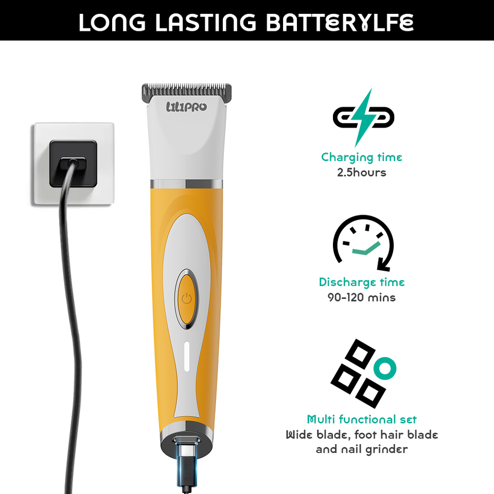 LILIPRO ZP-305 Tondeuse à poils de chien professionnelle 3 en 1 rechargeable, ensemble de tondeuse à poils d'animaux silencieux sans fil, lime à ongles électrique pour chat